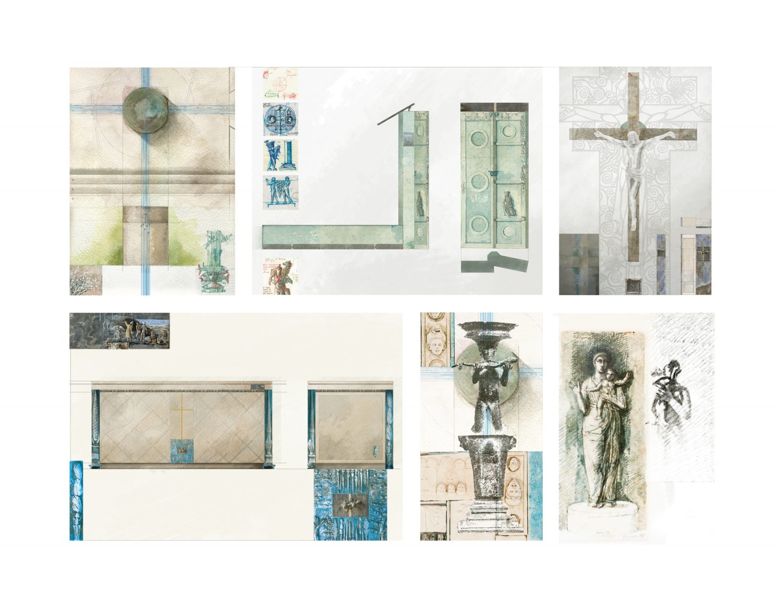 La terra cotta è materia artistica per l’altare e l’ambone, che con le sue patinature e l’inserimento di elementi in bronzo e ceramica stratificano nella costruzione di una struttura che è un luogo significativo, un luogo di significato, un intreccio di significati.