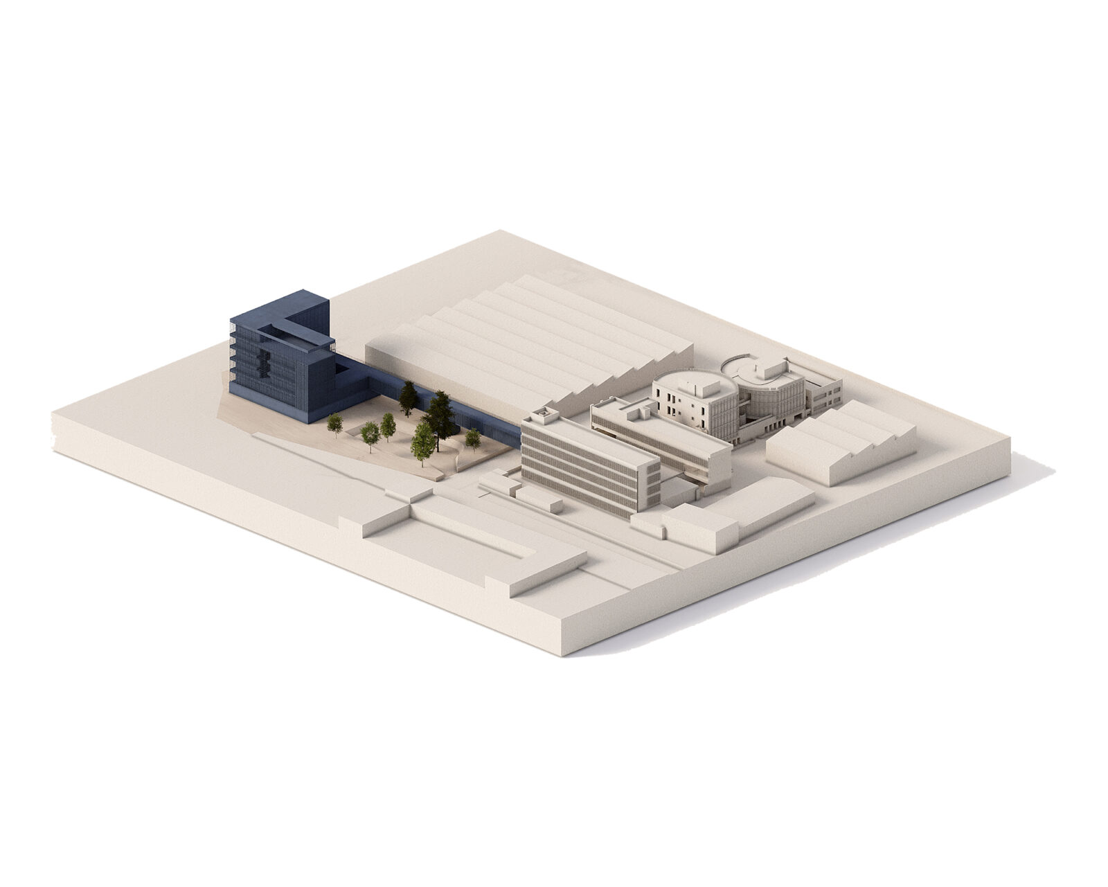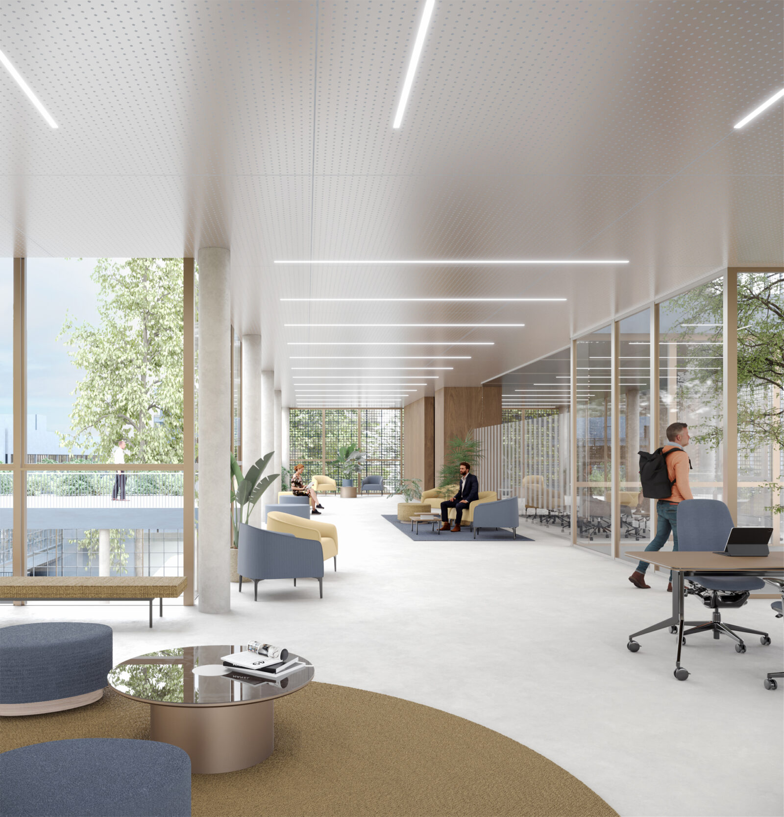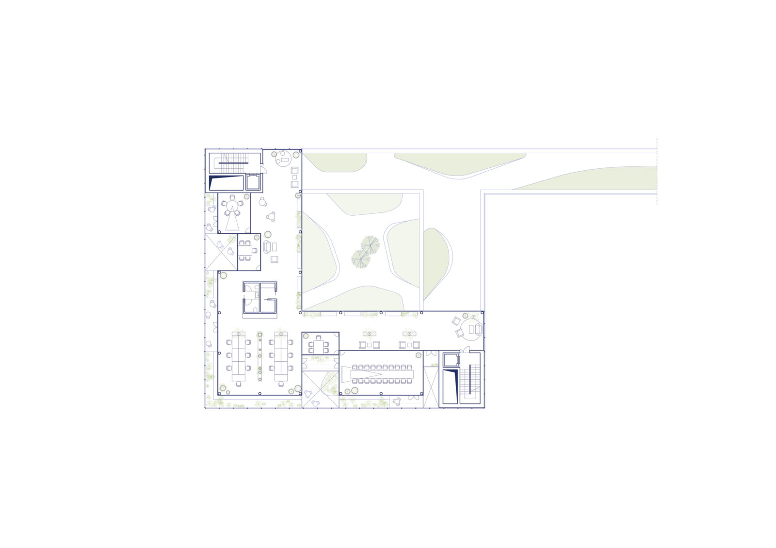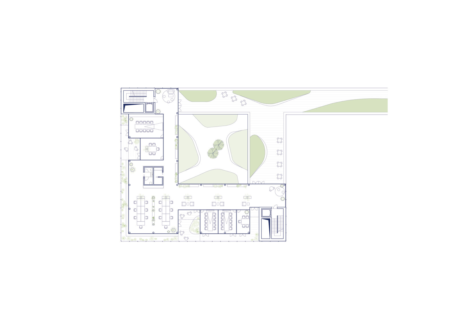 Il nuovo “Campus Cineca” si manifesta attraverso un’architettura iconica, razionale e sostenibile inserita all’interno di un nuovo parco ad uso dei dipendenti dell’intero Campus. La progettazione è stata guidata dall’idea di creare spazi condivisi e ambienti lavorativi innovativi. Un edificio direzionale moderno concepito tenendo conto delle esigenze delle persone, che si traducono in necessità legate allo spazio e al tempo. Il nuovo Campus si configura come una vera e propria infrastruttura blu/verde articolata su più livelli, dal piano terra – dove il nuovo parco car free si pone in continuità con le strade di quartiere – alle terrazze in quota, dove si configurano spazi più “privati”. Il verde penetra l’edificio attraverso l’involucro a doppio pelle dell’edificio, all’interno del quale piante autoctone trovano ideale luogo di crescita.