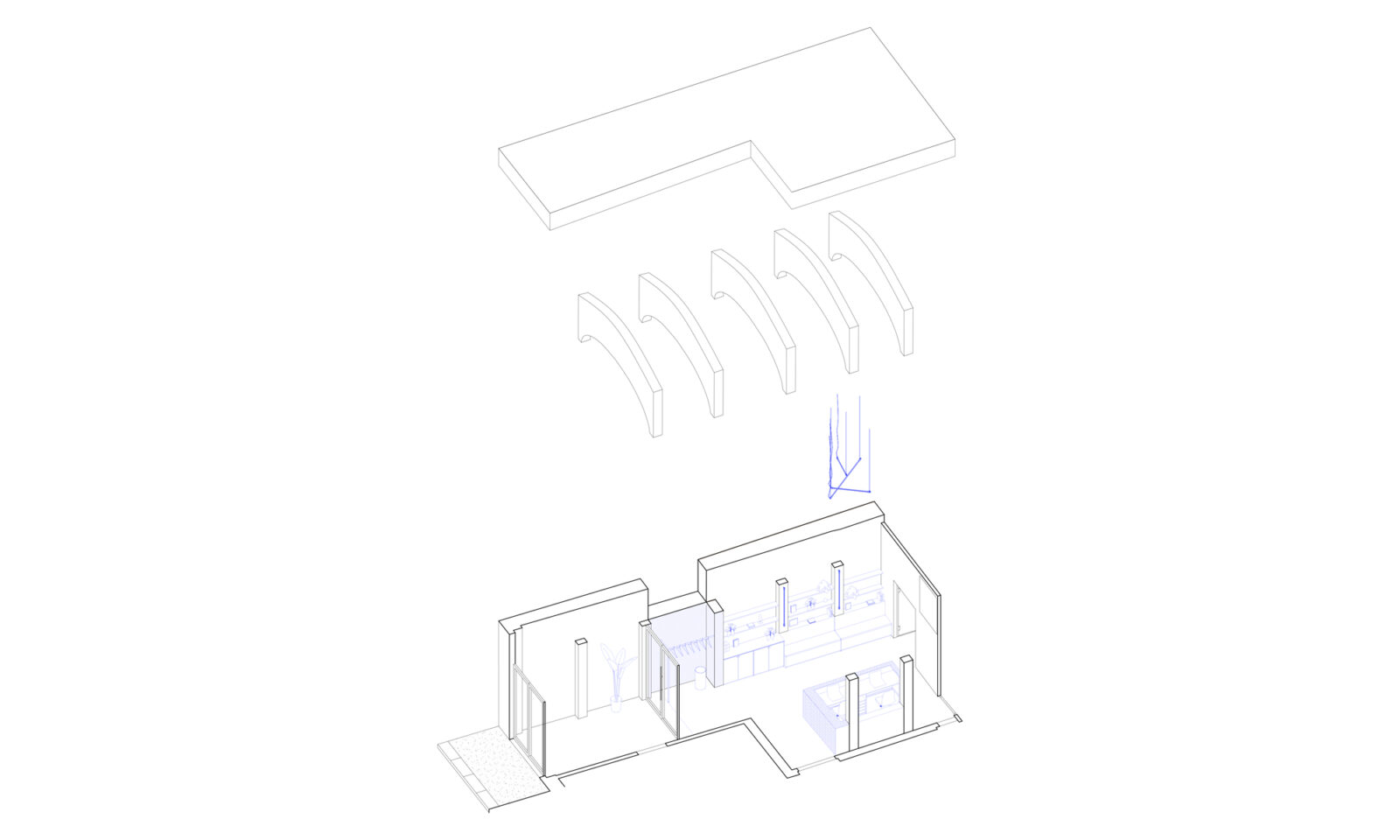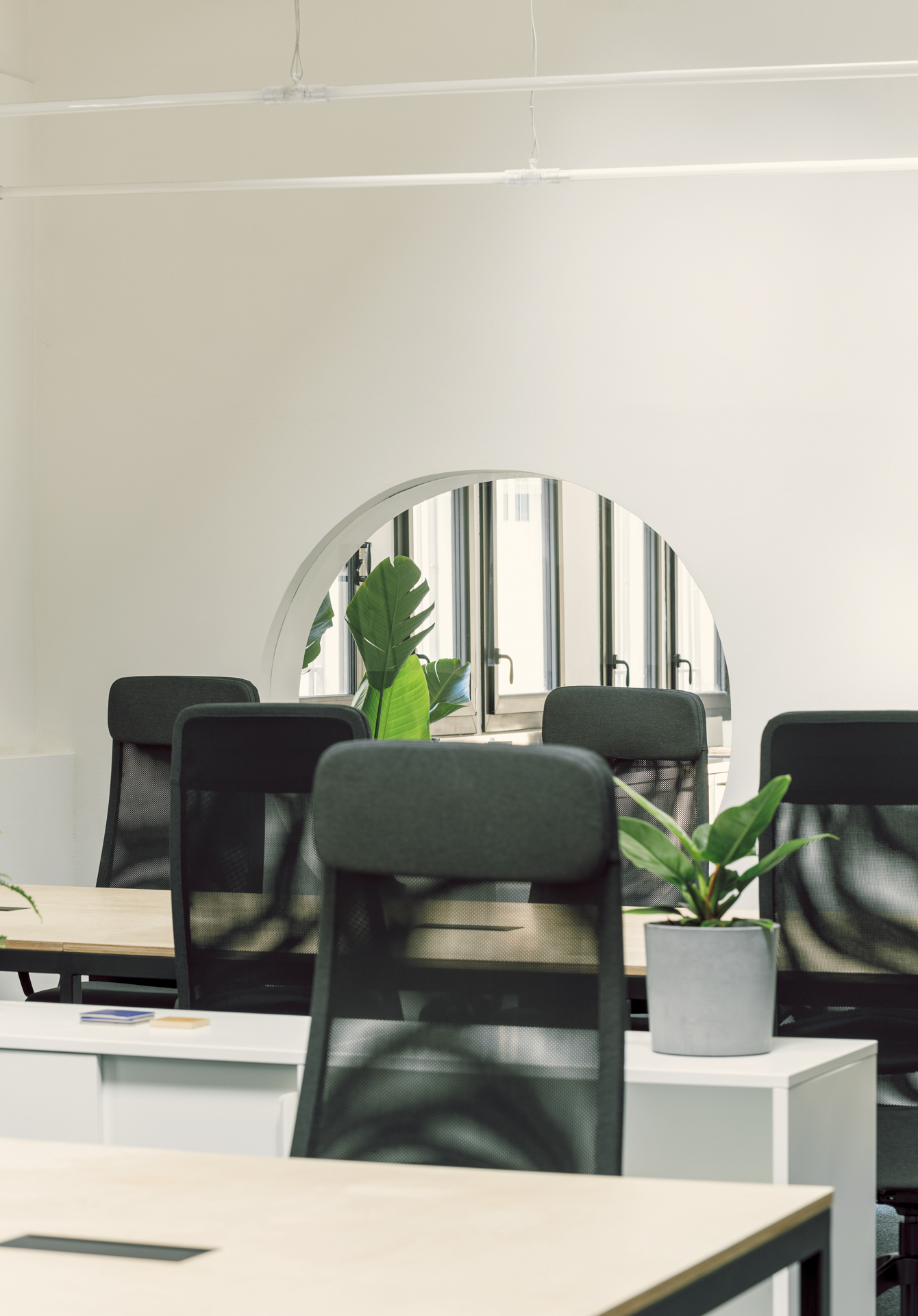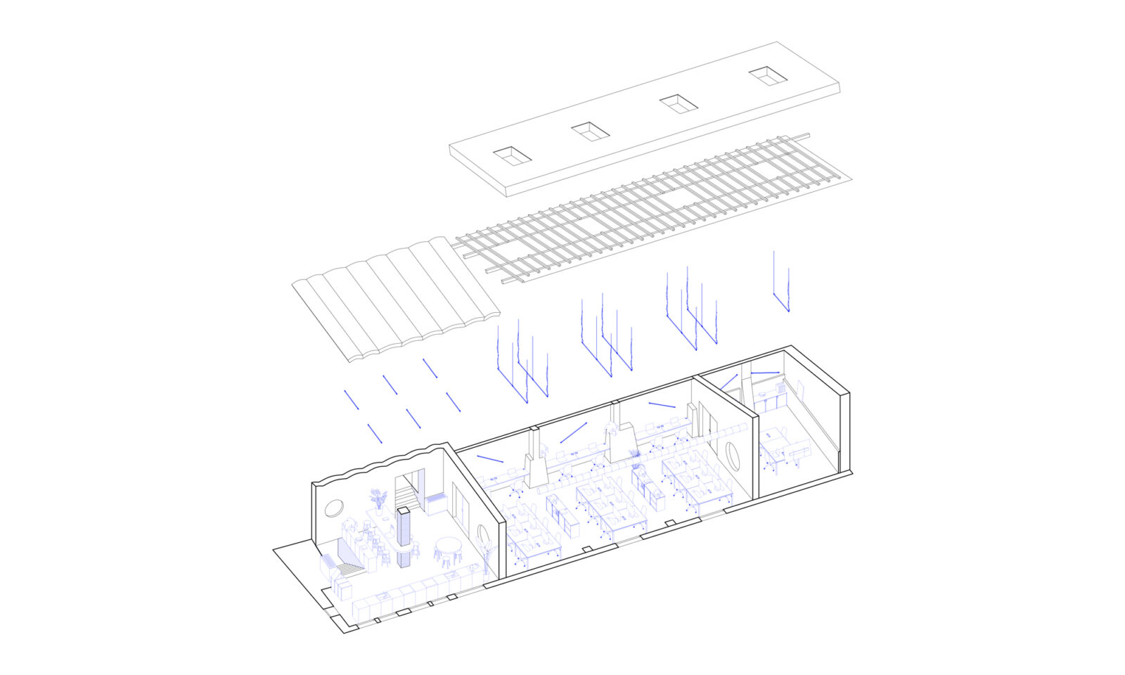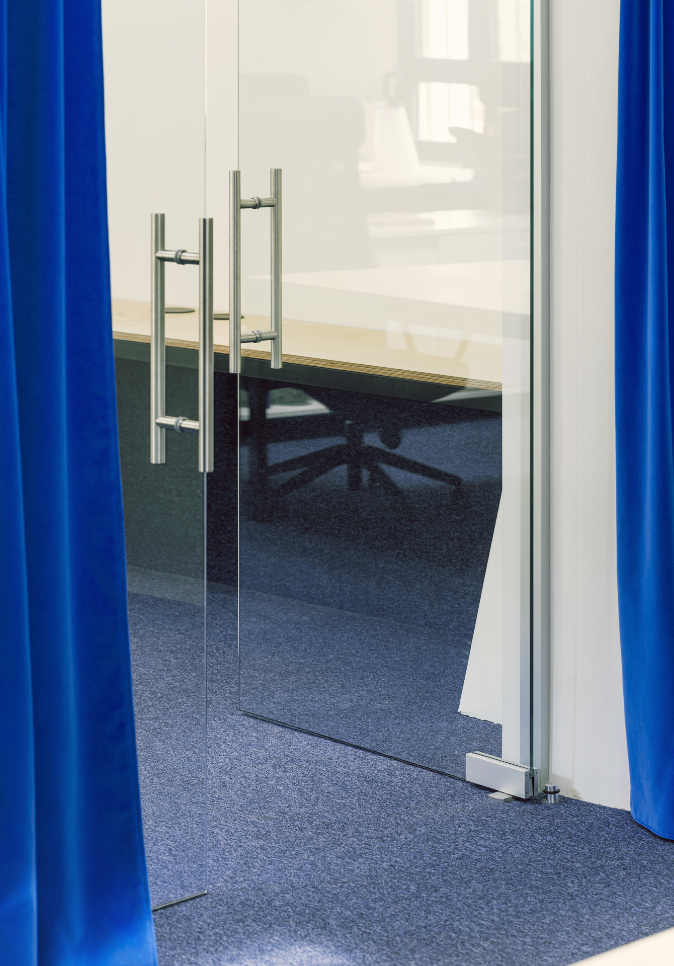 Gli uffici, distinti volumetricamente, sono illuminati da luce zenitale diffusa proveniente dalla copertura a falda. La pavimentazione in moquette, gli arredi in ferro e multistrato di betulla e l’illuminazione artificiale conferiscono agli spazi un’atmosfera calma e confortevole, perfetta per stimolare la produttività e il benessere dei dipendenti.
