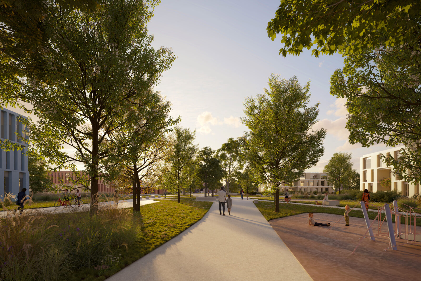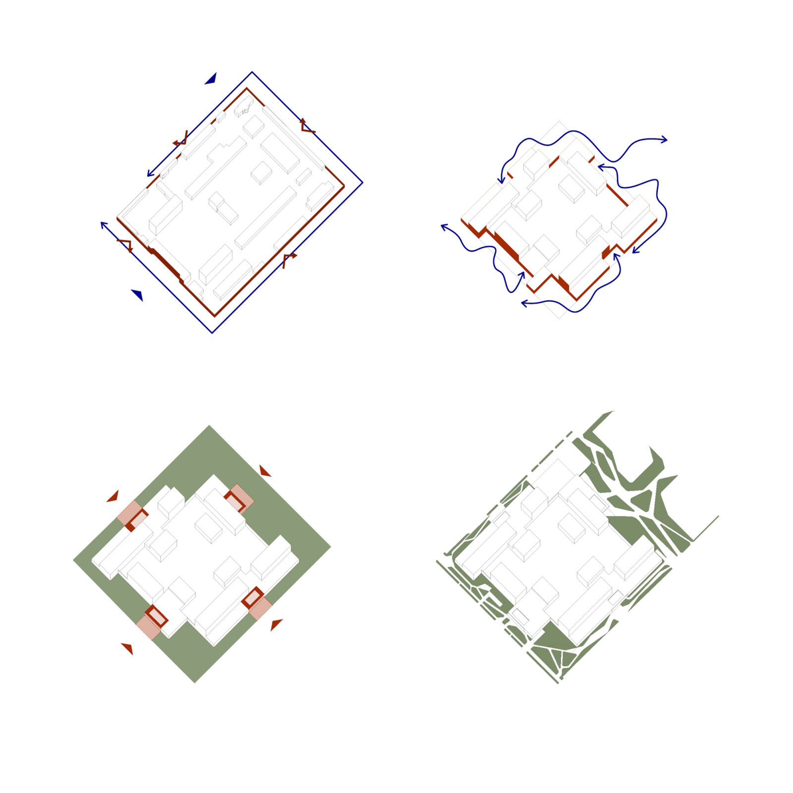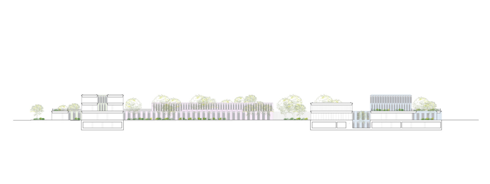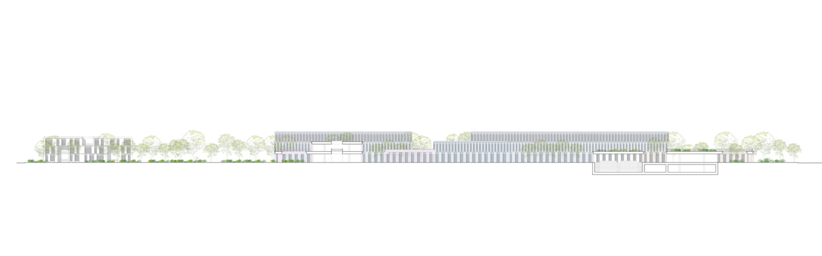 Il progetto della Nuova Cittadella della Sicurezza di Rimini trasforma un’area demaniale dismessa in un polo multifunzionale organizzato attorno a un “quadrilatero amministrativo”. L’impianto architettonico si basa su un quadrato di 195 metri di lato che accoglie quattro edifici indipendenti (Prefettura, Guardia di Finanza, Carabinieri e Polizia di Stato), disposti in modo da creare un perimetro “zigzagante” che rompe la rigidità del confine urbano. Le strutture, con un’altezza variabile da uno a tre piani, adottano forme stereotomiche a “T” per ottimizzare la distribuzione interna e ridurre i percorsi orizzontali. Un elemento distintivo è l’involucro edilizio, realizzato con un sistema prefabbricato in lastre di calcestruzzo facciavista riciclato; ogni edificio presenta una colorazione differente per favorirne la riconoscibilità istituzionale. Ampie terrazze inverdite sulle coperture migliorano il microclima e la qualità degli spazi di lavoro. Al centro del complesso, il “cortile” funge da ecosistema protetto per funzioni comuni come l’auditorium e la mensa. A nord, quattro volumi residenziali coordinati completano l’intervento, integrandosi con il tessuto urbano preesistente.