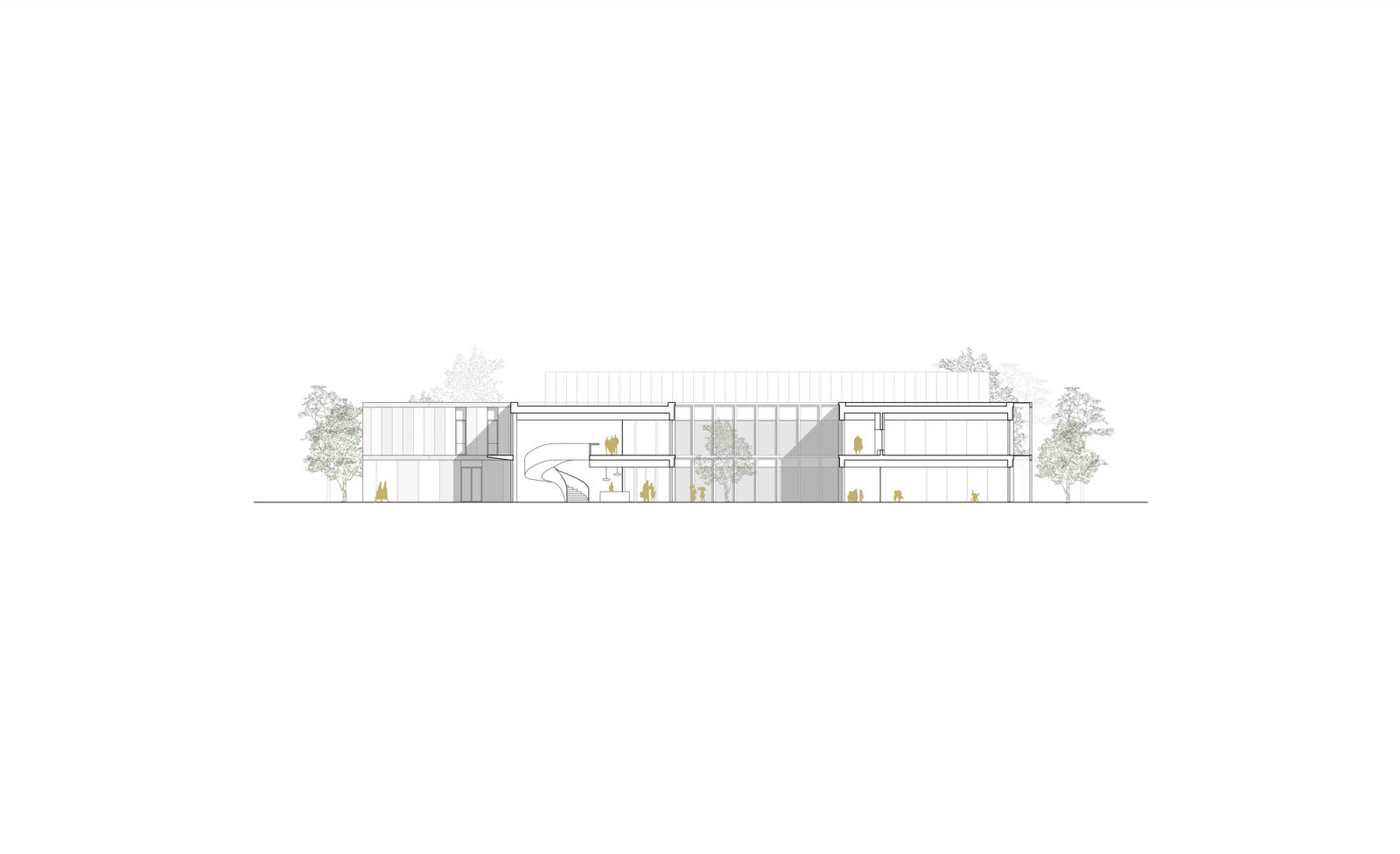 La volumetria di progetto nasce dall’intersezione di tre volumi a pianta quadrata, assemblati mediante una logica chiara, funzionale e flessibile.