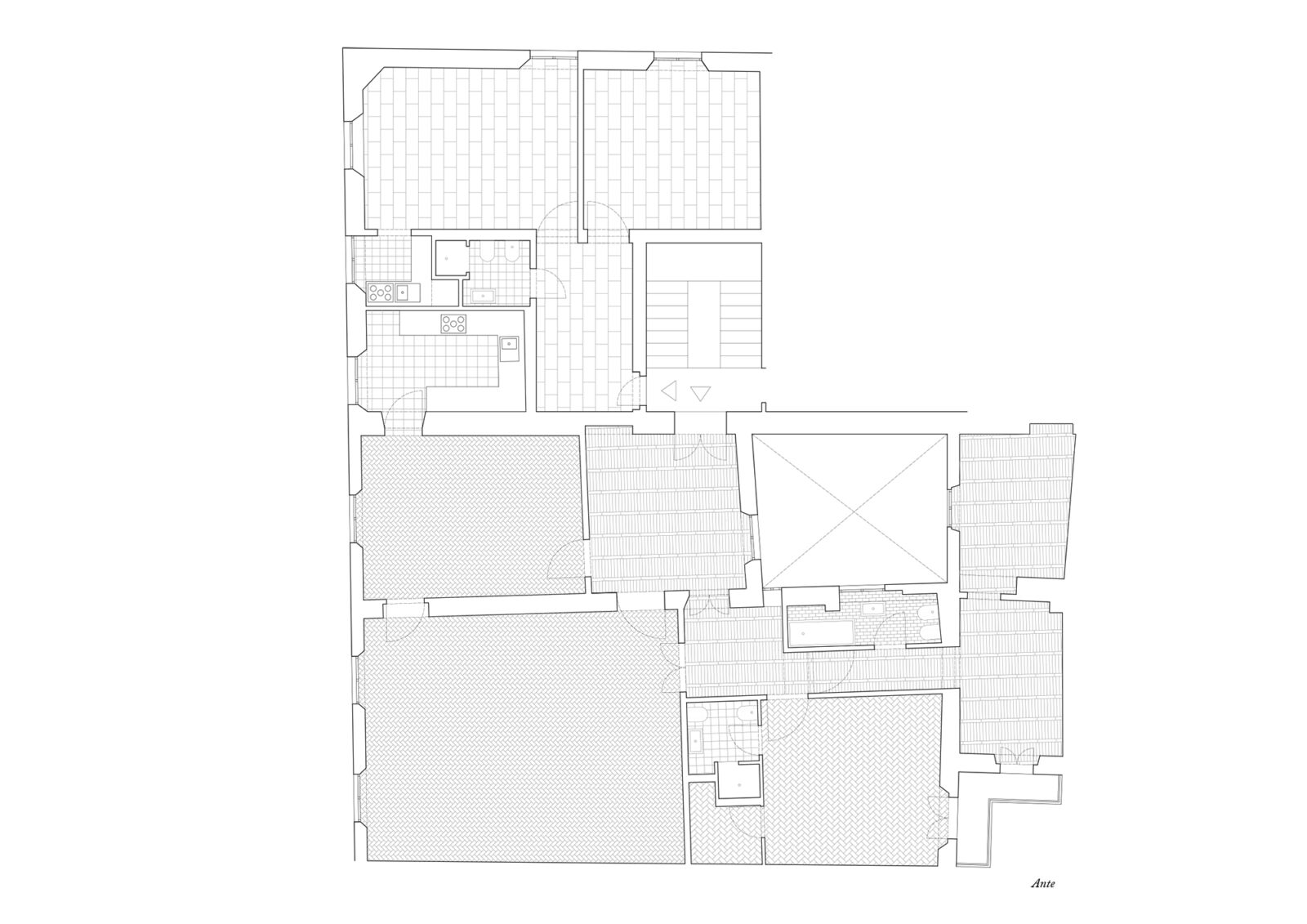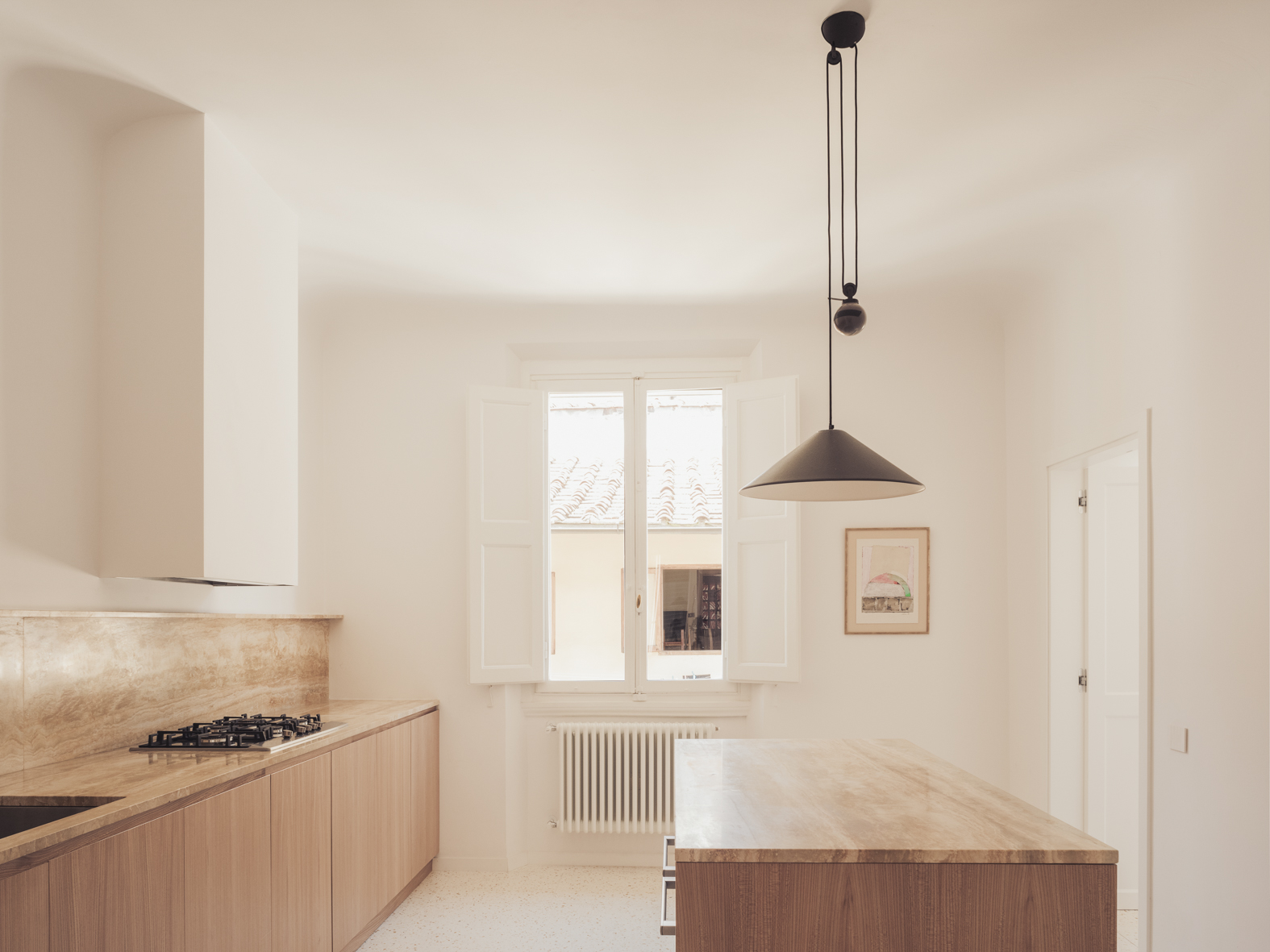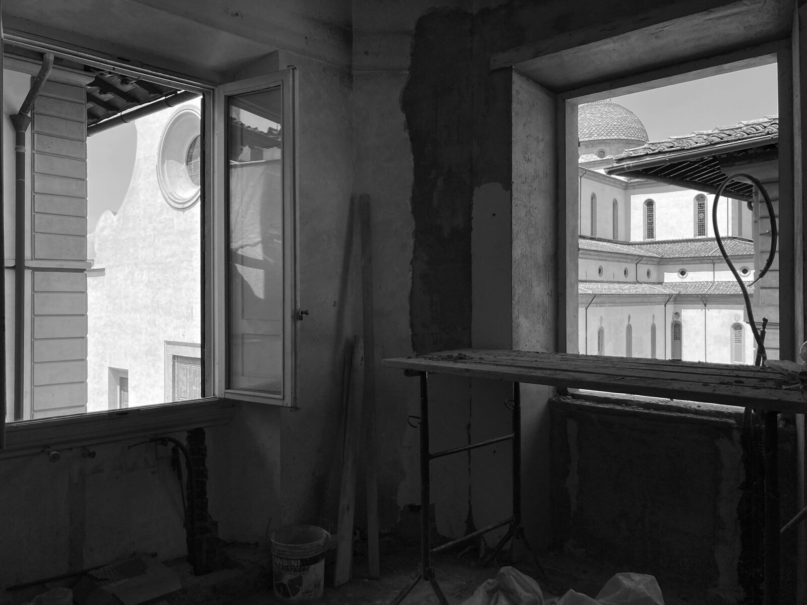 Il progetto ristabilisce la consistenza originaria di un appartamento affacciato sulla chiesa di Santo Spirito nel centro storico fiorentino, alterato negli anni da frazionamenti, modifiche e usura. L’intervento consiste in una totale revisione del layout della casa, diretto a soddisfare le esigenze dell’abitare contemporaneo di una giovane famiglia, in parallelo al consolidamento e restauro delle strutture del fabbricato storico in cui è inserito.