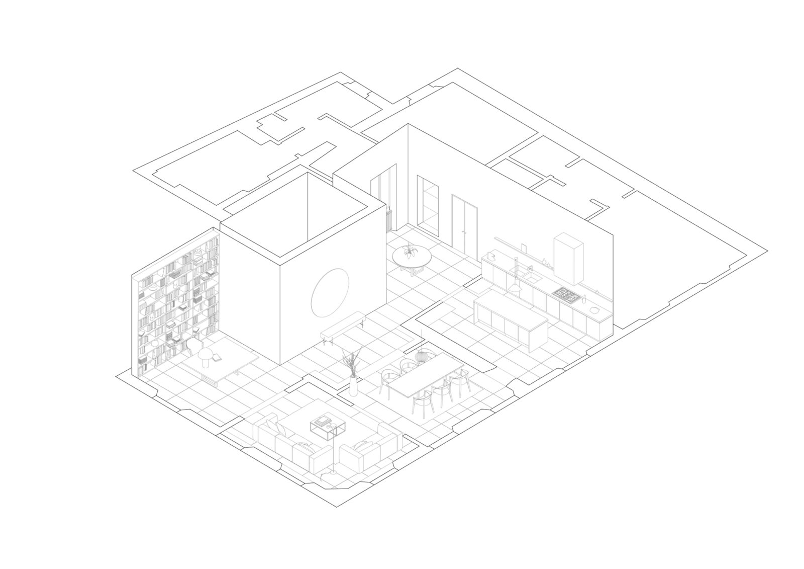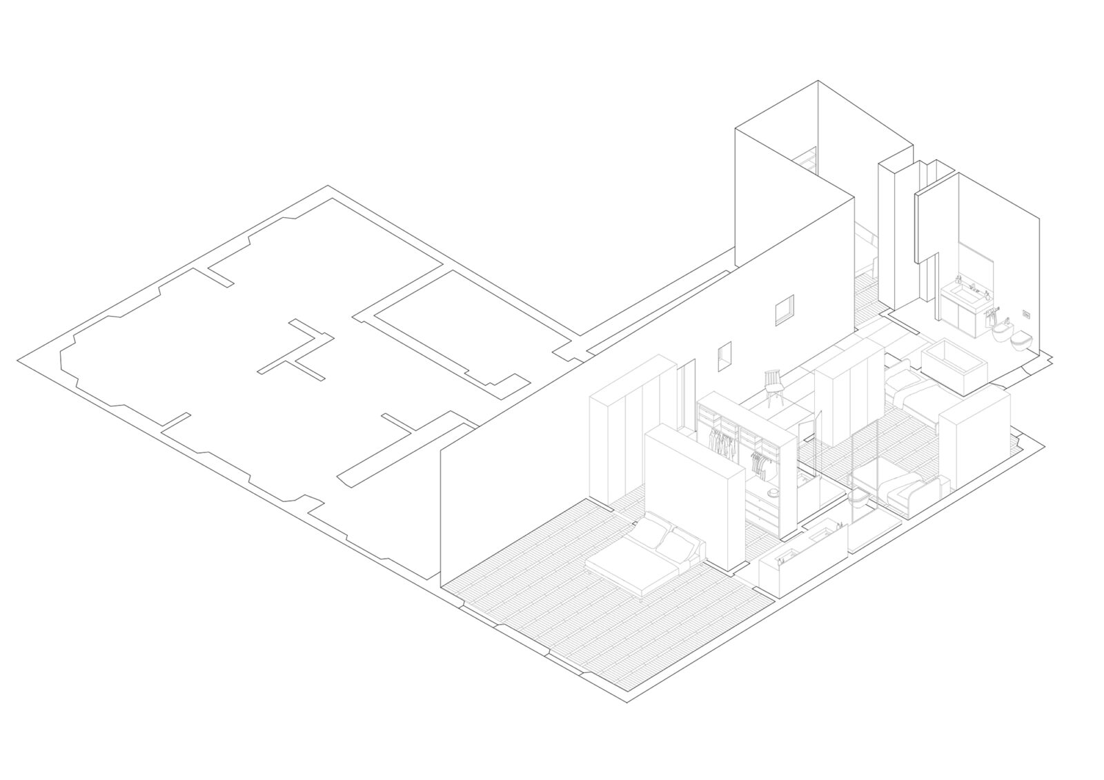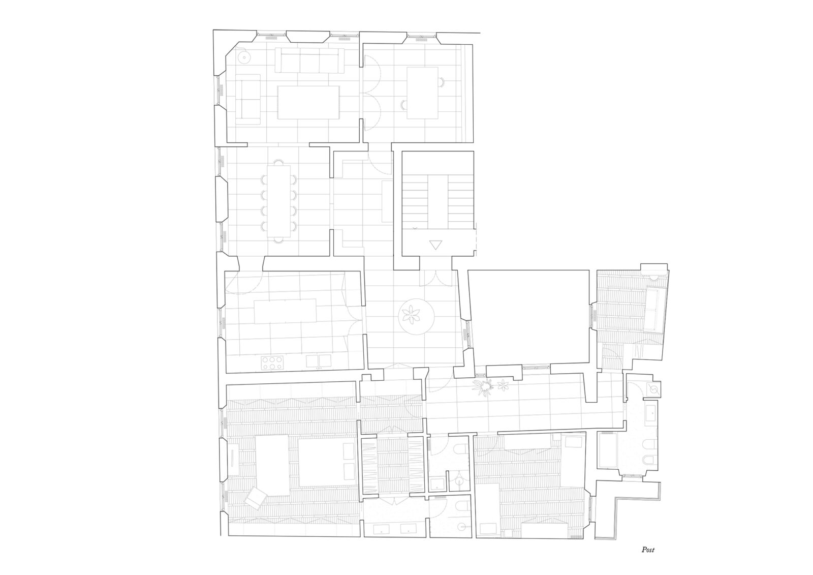Il progetto ristabilisce la consistenza originaria di un appartamento affacciato sulla chiesa di Santo Spirito nel centro storico fiorentino, alterato negli anni da frazionamenti, modifiche e usura. L’intervento consiste in una totale revisione del layout della casa, diretto a soddisfare le esigenze dell’abitare contemporaneo di una giovane famiglia, in parallelo al consolidamento e restauro delle strutture del fabbricato storico in cui è inserito.